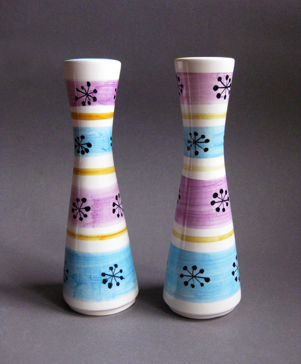 Os saleiros e pimenteiros em faiança, abaixo apresentados, são bons exemplares das tendências decorativas da época, explorando o grafismo abstracto executado à mão livre.