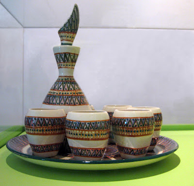 Prato, garrafa e copos da série "Arte Nova" - Maria de Lourdes Castro - Fábrica de Loiça de Sacavém